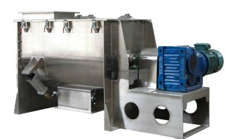 臥式螺帶混合機(jī)由傳動(dòng)部件、雙層螺條攪拌器、U形桶體組成。外螺條盤(pán)繞形式配合旋轉(zhuǎn)方向把物料從兩端向中間推動(dòng),而內(nèi)螺條把物料從中間向兩端推動(dòng),螺帶不同的角度、方向繞法使物料產(chǎn)生不同的流動(dòng)方向,物料通過(guò)不斷的對(duì)流循環(huán),剪切摻混達(dá)到快速混合。