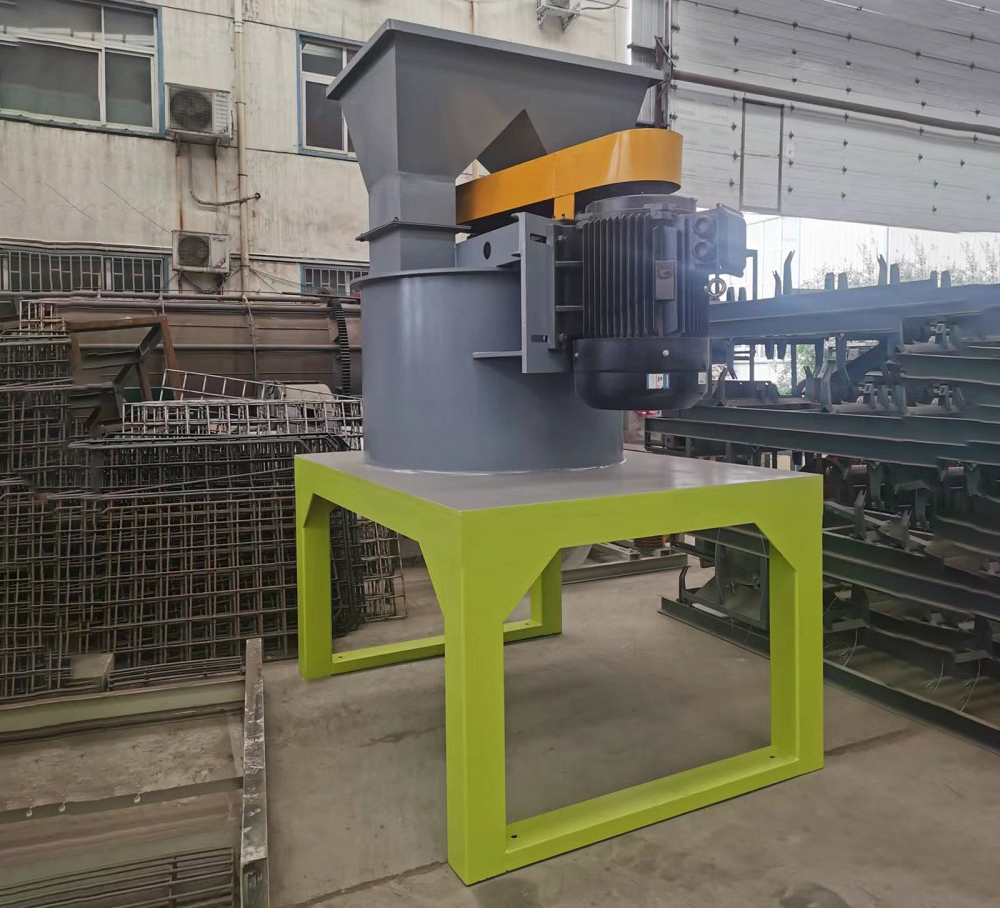 結構由下機架、機殼、上下軸座、主軸、錘頭、錘頭支架、皮帶輪、電機架等部份組成,動力經三角帶帶動主軸旋轉,主軸有上下兩個軸承座,軸承座安裝在機殼的上端和下端,機殼總成安裝在下機架上,主軸上裝有錘頭、錘頭支架,加料斗裝在機殼上部,為了裝卸錘頭方便,機殼上開有活門,便于拆裝維修。